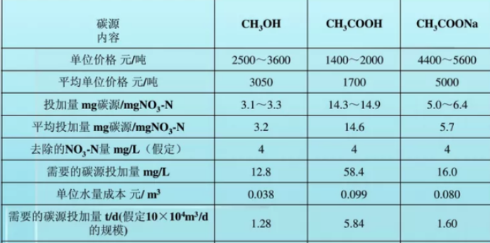 1、外加碳源应易被微生物降解,易被反硝化菌利用,不存在残留物对后续出水达标造成不利影响的问题;