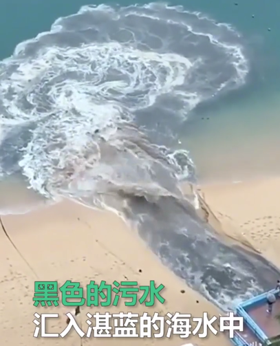 一位目击者拍到废水从墨西哥格雷罗州的阿卡普尔科湾海岸线流入太平洋。黑色的污水汇入湛蓝的海水中,且臭气熏天,整个过程长达25分钟。